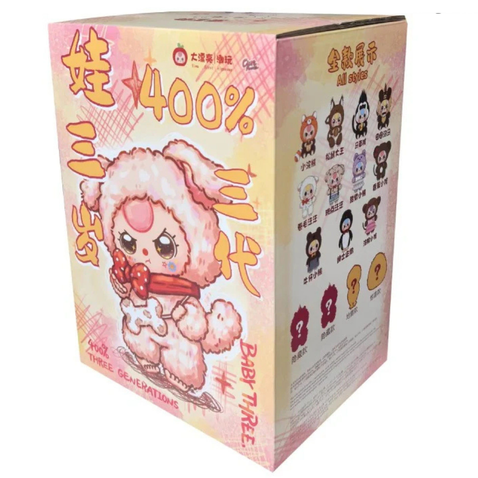 Baby Three 400% V3 Plush Series Blind Box. One large blind box with a plush doll inside.