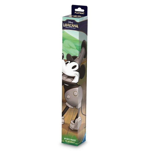 Disney Lorcana Playmat Set 2 Steamboat Mickey. Protect your card collection with this gorgeously illustrated playmat. This fabric top prevents damage during gameplay and can also be used as a desk mat or mouse pad, while the anti-slip bottom keeps the playmat in place during use.
