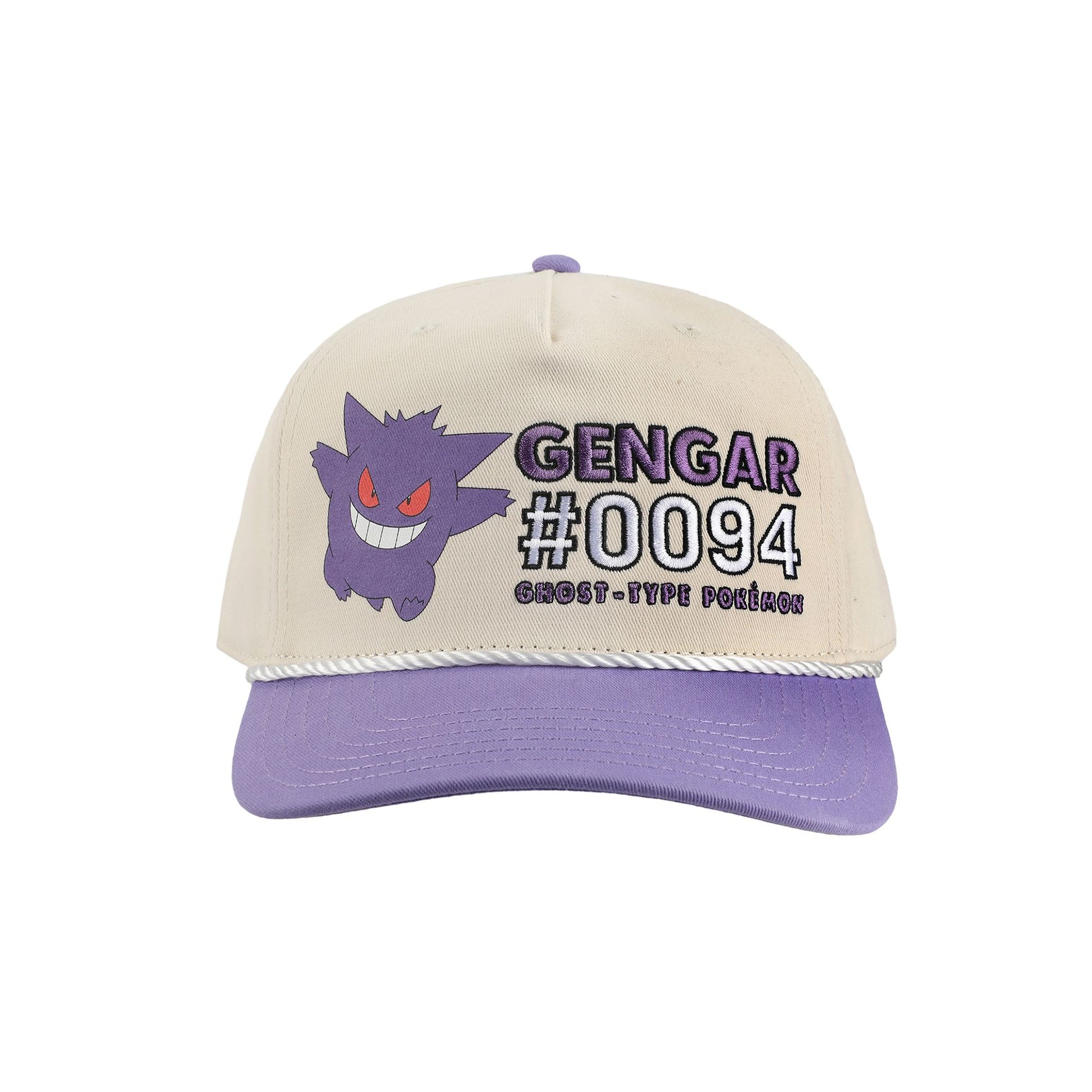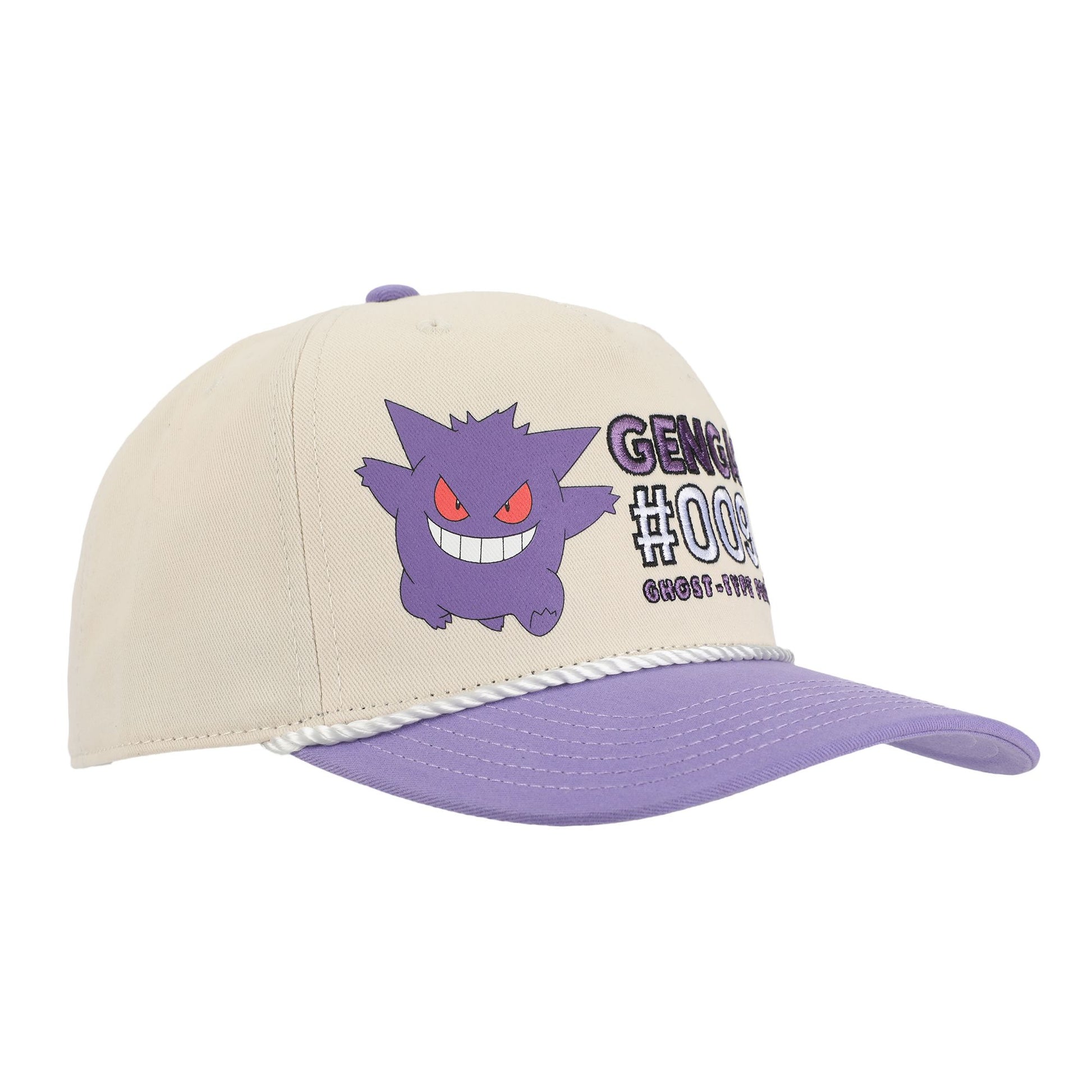 This Pokémon snapback hat features Gengar with his Pokedex number and type, adding a mischievous and stylish touch for fans!