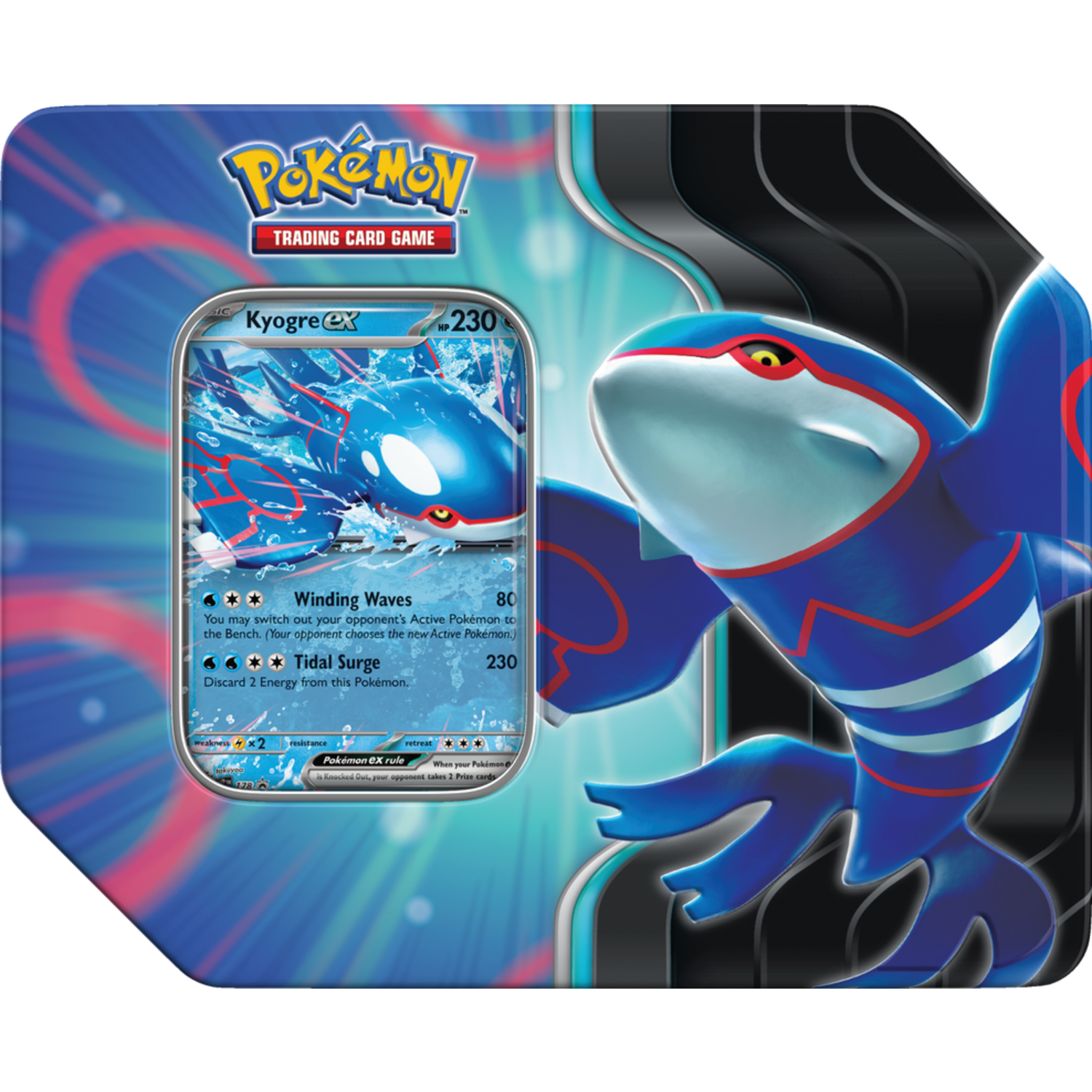 Legendary Pokémon are behind many of the mysteries of the Pokémon world, and now you can discover their amazing power for yourself! With this tin, choose the surging waves of Kyogre ex as a foil promo card that’s ready to add to your deck or collection binder. You also get a handful of Pokémon TCG booster packs with more cards to find inside!